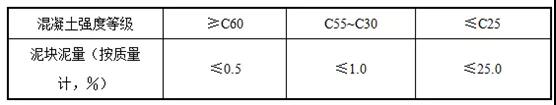 對于有抗凍、抗?jié)B或其他特殊要求,但強(qiáng)度等級不超過C25的混凝土用砂,其泥塊含量不應(yīng)大于1.0%。