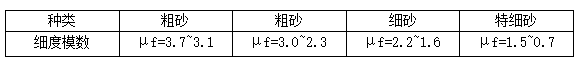 砂的粗細(xì)程度按細(xì)度模數(shù)μf分為粗、中、細(xì)、特細(xì)四級,其范圍應(yīng)符合下表規(guī)定。