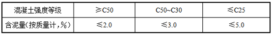 天然砂中含泥量應(yīng)符合下表規(guī)定。