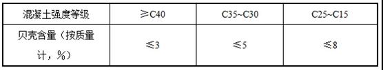 對于有抗凍、抗?jié)B或其他特殊要求,但強(qiáng)度等級不超過C25混凝土用砂,其貝殼含量不應(yīng)大于5%。