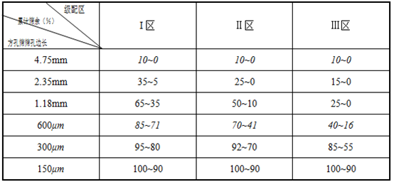 配制混凝土時宜優(yōu)先采用Ⅱ區(qū)砂。當采用Ⅰ區(qū)砂時,應提高砂率,并保持足夠的水泥用量,滿足混凝土的和易性;當采用Ⅲ區(qū)砂時,宜適當降低砂率。