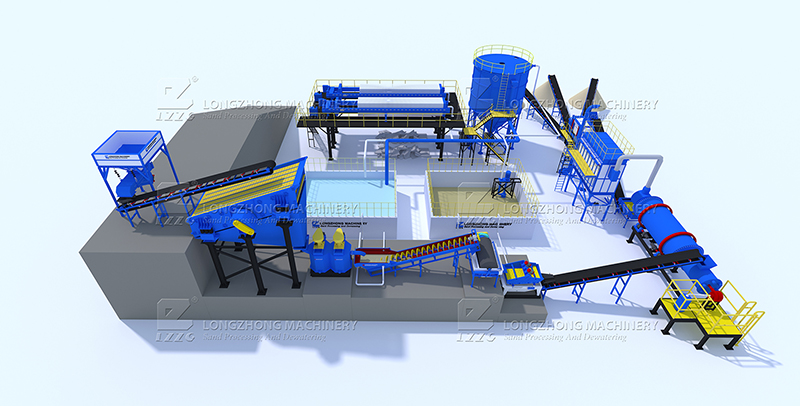 針對石英砂成品要求20-140目(0.1-0.85mm)的粒度,先進行初步的篩分除雜、清洗、除鐵、脫水、烘干、精細篩分,以及后端尾水回收再利用等。